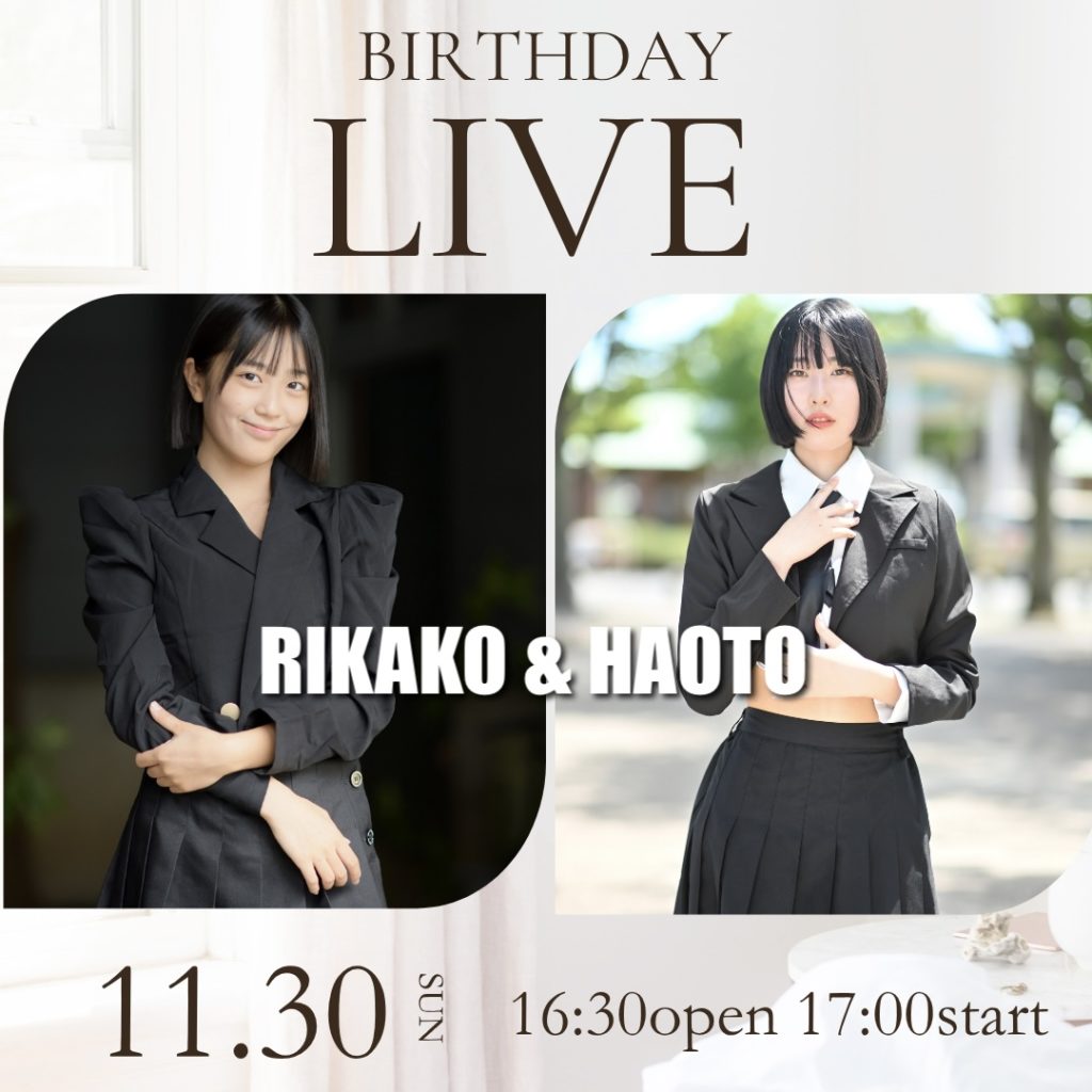 11/30(日)にHAOTO&新メンバーRIKAKOの合同生誕祭ライブを行います。
